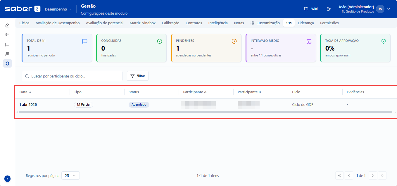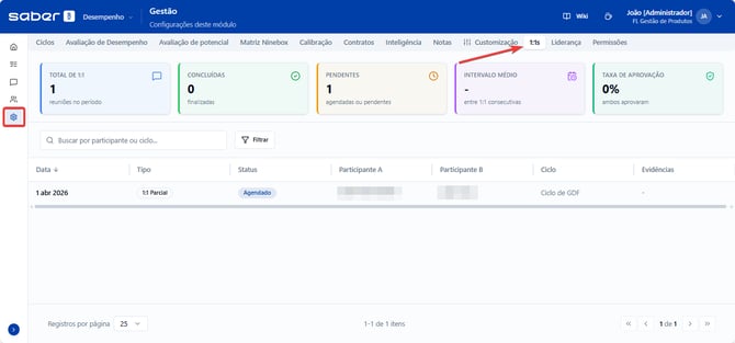 Acessar a listagem geral de reuniões 1:1.