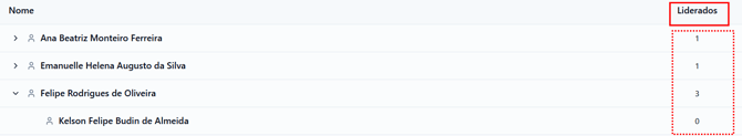 - Contagem de Liderados: A coluna da direita mostra quantos colaboradores estão abaixo daquele gestor.