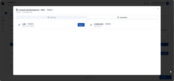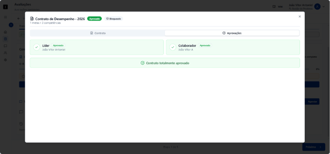 O contrato de desempenho é um acordo mútuo. Por isso, o sistema exige que tanto o líder quanto o colaborador registrem a sua aprovação.