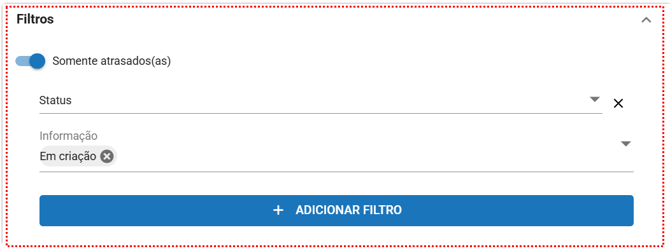 A área de filtros permite personalizar ainda mais o que será exibido no painel.