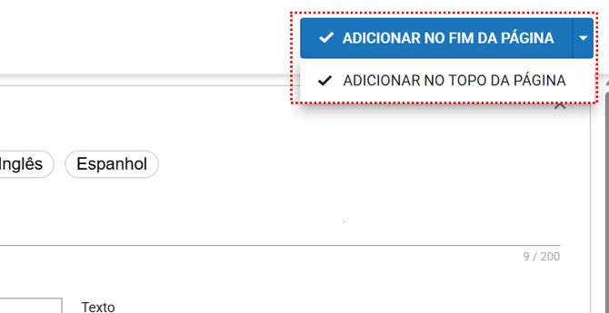 Com essa opção ativada, os novos componentes serão colocados no início da página, acima dos elementos já existentes.