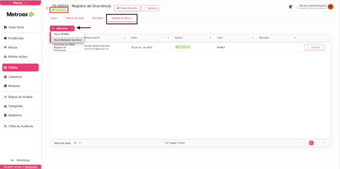 - Abra o FMEA (que já está Aprovado) que você deseja analisar.