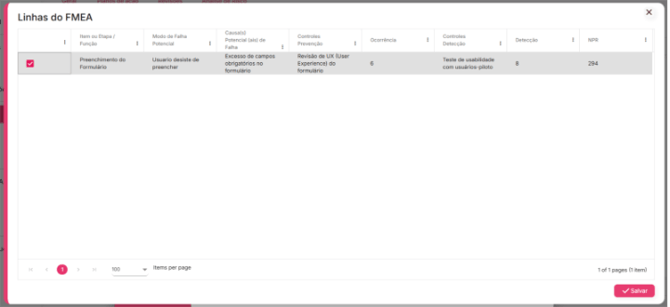 - Primeiro, consulte a tabela de "Análise FMEA" para lembrar quais linhas você selecionou.