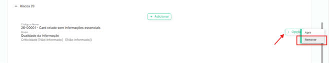- Clique no botão Opções (no canto do card do item) e selecione Remover.