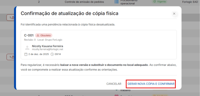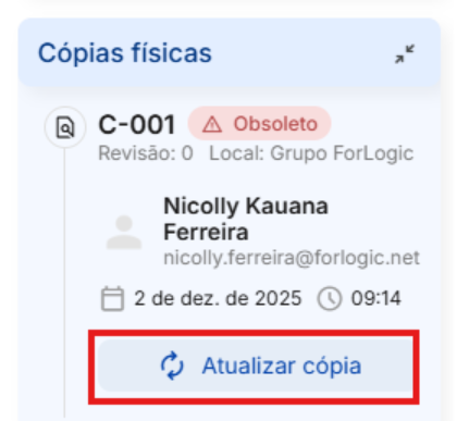 Quando uma cópia fica "Obsoleta", ela se torna uma pendência. Você precisa substitui-la fisicamente e confirmar no sistema.
