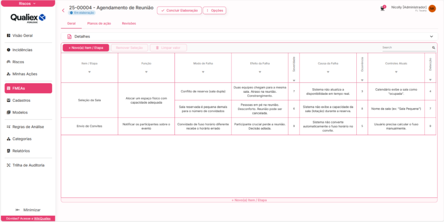 - Siga os passos do artigo "Como Cadastrar um Novo FMEA".