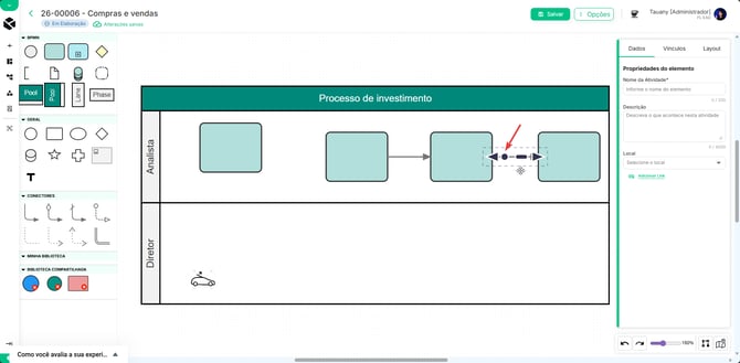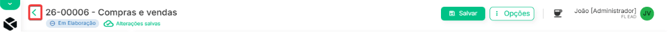 - Sair/Voltar: Clique no ícone de voltar (<) ao lado do código e nome do fluxo para fechar o editor e retornar à página principal do processo. Lembre-se de conferir se o salvamento foi concluído antes de sair!