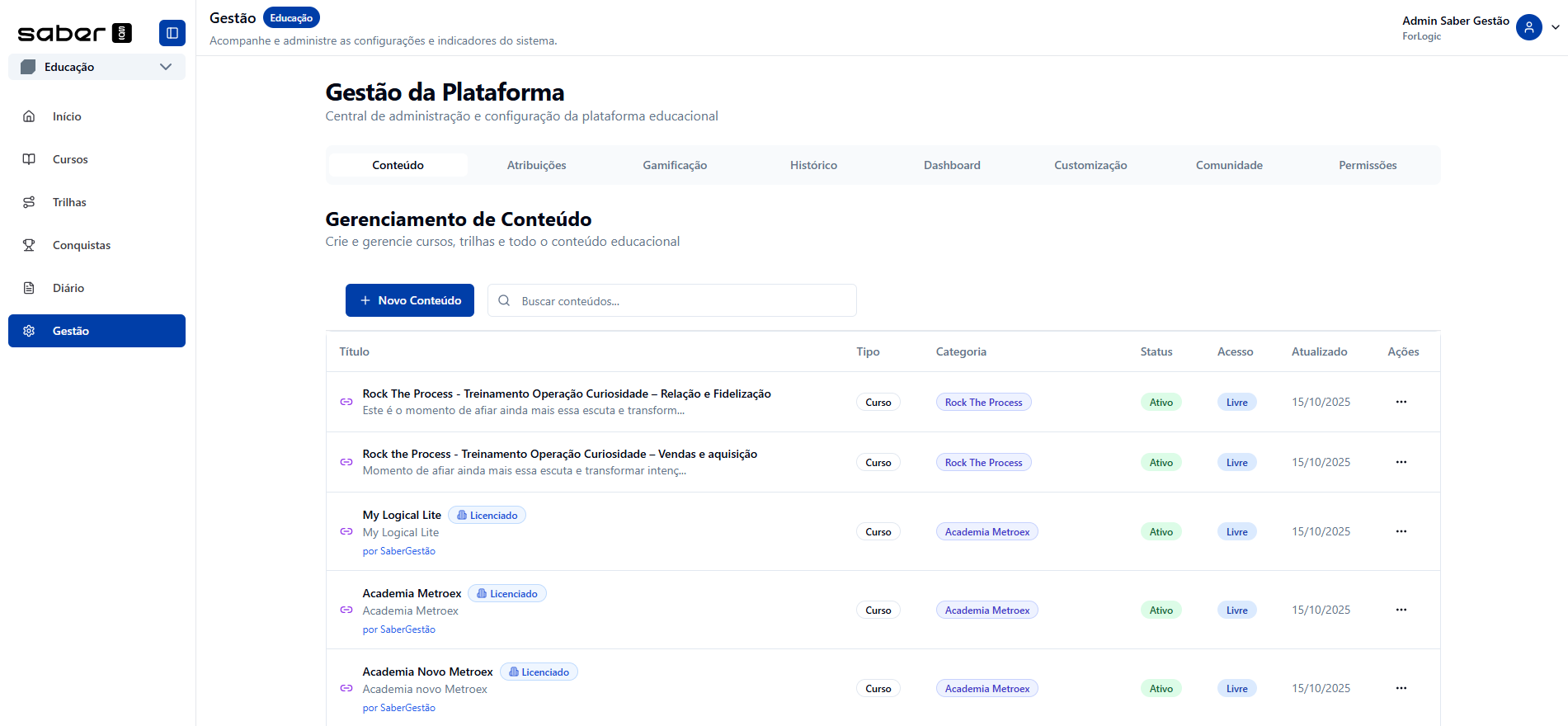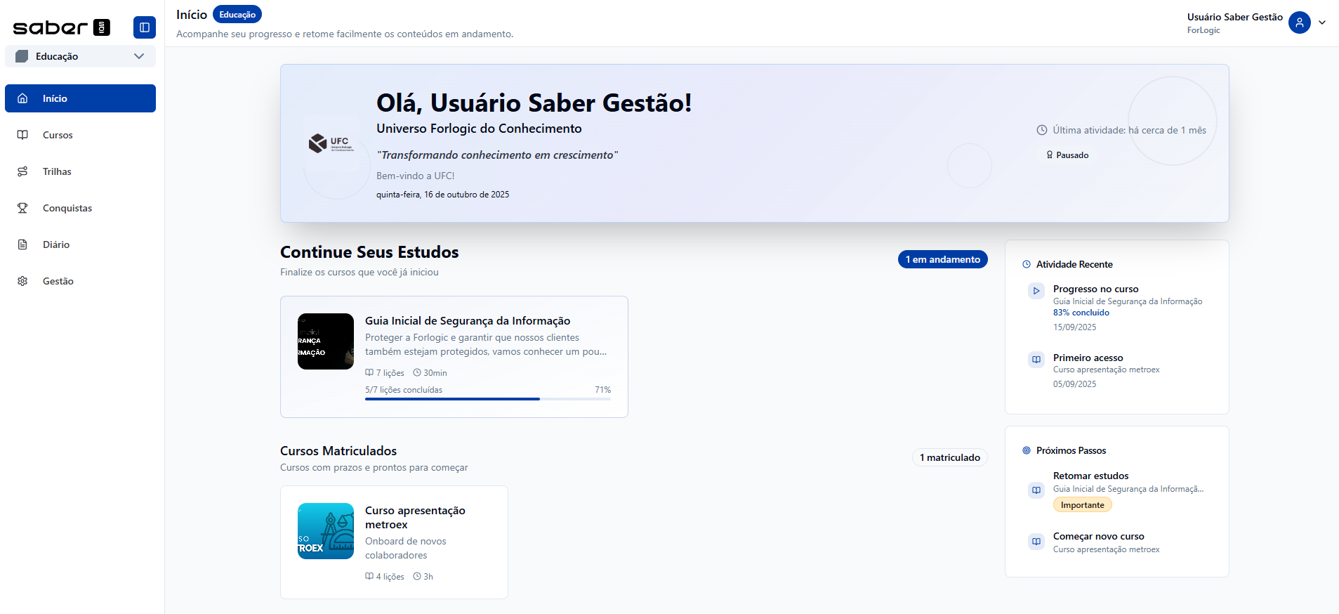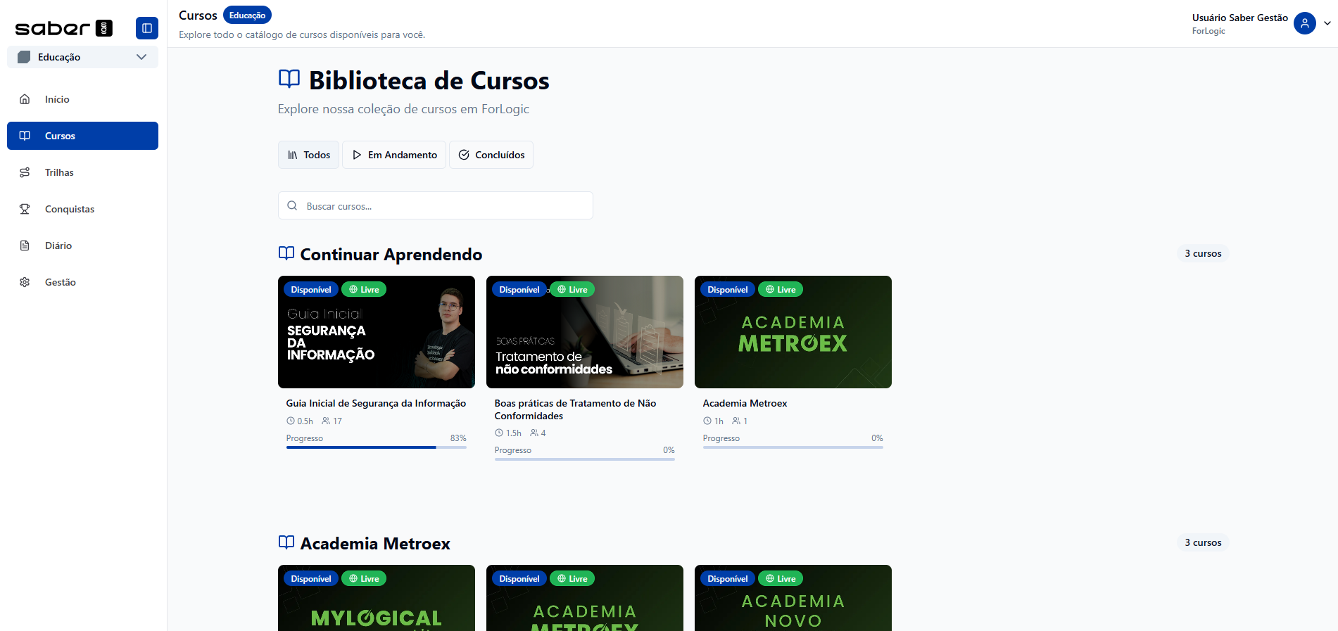 O Módulo de Educação é o ponto central para a gestão do aprendizado interno dentro do Universo do Saber. Ele simplifica a criação de cursos, incentiva o desenvolvimento contínuo e oferece uma visão completa do progresso dos colaboradores — tudo em um só lugar.