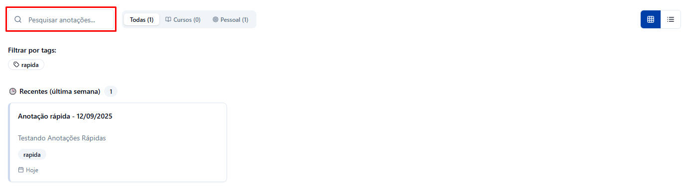 - Pesquisa Simples: A busca procura pelo texto das anotações, não por tags