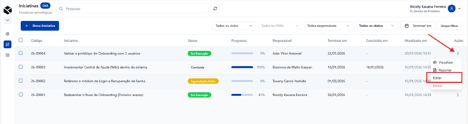 - Encontre a Iniciativa: Na tela principal, localize o item que você deseja alterar na lista e clique nos três pontinhos no final da linha.