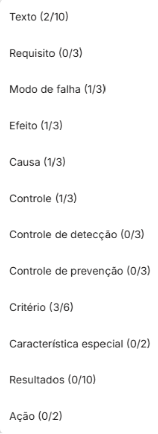 Fundamental para estabelecer o fluxo de preenchimento que a sua equipe deve seguir. Esta sequência definida será a ordem exata de exibição das colunas na tabela do FMEA final, garantindo a padronização e a eficiência na entrada de dados. |