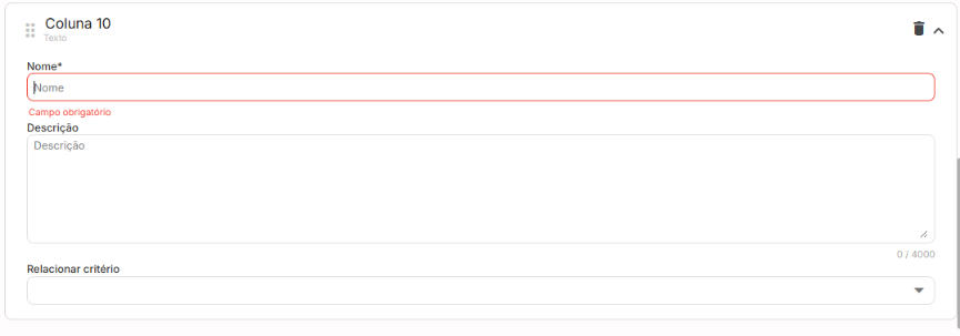 Use o ícone da lixeira (à direita) para remover colunas personalizadas que não são mais necessárias. |