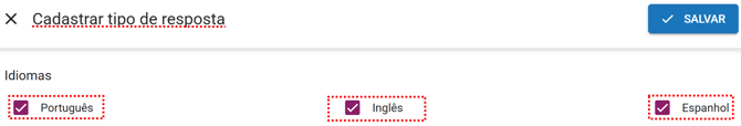 Para cadastrar um tipo de respostas, ao acessar o módulo vá a aba "Tipos de Respostas" e selecione