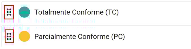 - Aderência da resposta: qual a % para atender o requisito (ex: para que um item seja considerado “Conforme”, o valor deve atingir 100%; para classificá-lo como “Parcialmente conforme”, é possível definir um limite como 50%)