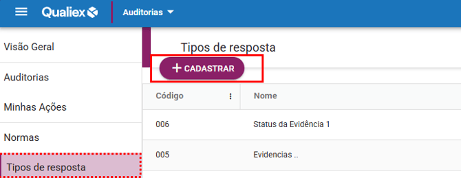 Para cadastrar tipos de resposta, é necessário ter a permissão de "Gerenciar" Tipos de Resposta, definida em Configurações > Papel e Permissões. Clique aqui para saber como realizar a configuração para o módulo Auditorias.
