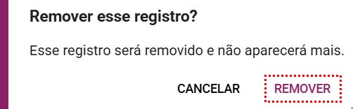 Ao selecionar remover será aberto uma janela para confirmar a remoção do tipo de resposta.