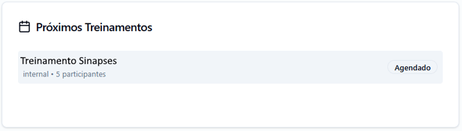 Apresenta os próximos treinamentos agendados e o número de participantes em cada um deles.