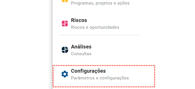 Após realizar o login, clique nos conjuntos de módulos contratados e selecione Configurações. Você será direcionado automaticamente para o módulo.