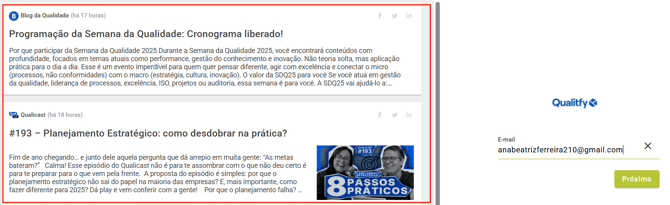Do lado esquerdo da tela haverá um atalho para os últimos artigos do Blog da Qualidade e episódios do Qualicast, para você não perder nada!