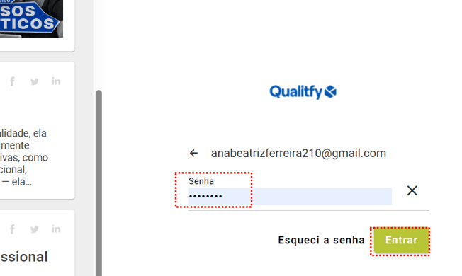 Para acessar as novas configurações clique aqui para fazer o Login no Qualitfy. Abrirá a página para você inserir seus dados de acesso.
