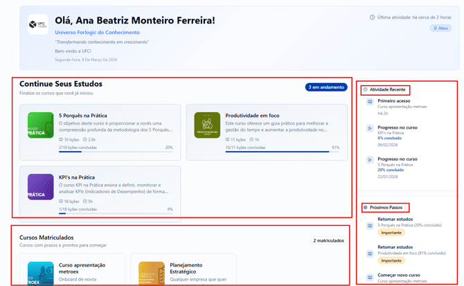 seus cursos matriculados;