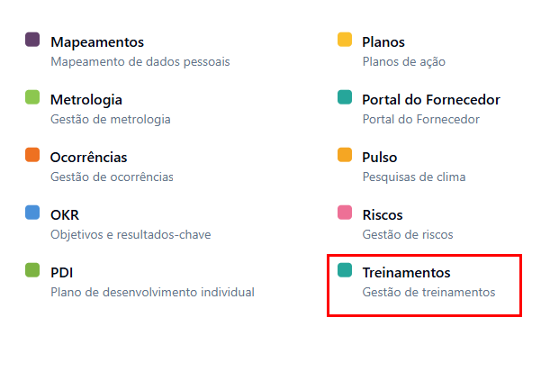 Como acessar o módulo Treinamentos