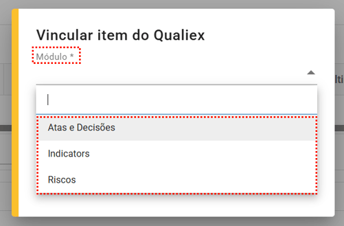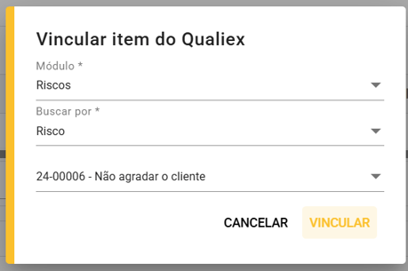 - Caso selecione o módulo de Riscos, serão exibidos os riscos disponíveis para vinculação.
