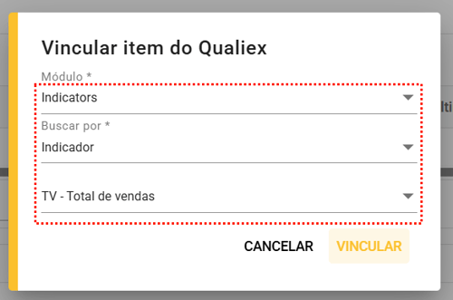 - Buscar por: utilize esta opção para localizar e selecionar os indicadores que serão vinculados à sua estratégia.