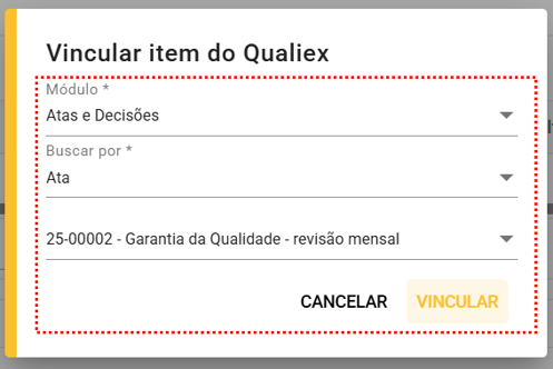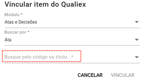 - Busque pelo código ou título: Você pode localizar facilmente os indicadores, atas e riscos desejados utilizando tanto o código quanto o título informados no módulo de origem.
