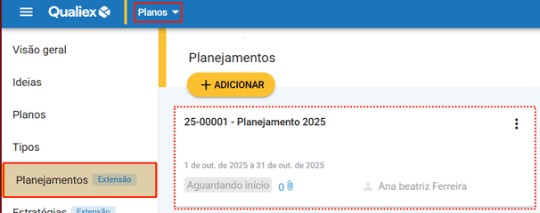 Para adicionar um anexo, acesse a aba “Planejamentos” e escolha o planejamento desejado.