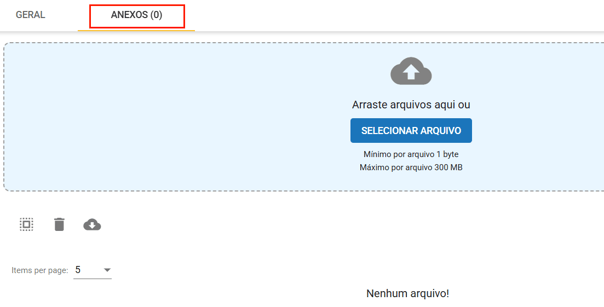 correspondente para marcar todos os anexos da lista. - Remover arquivo: Selecione o arquivo desejado e clique em