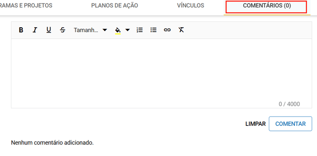 Essa funcionalidade facilita a comunicação entre os membros da equipe, permitindo que todos os colaboradores envolvidos troquem informações, façam observações e registrem decisões relacionadas ao andamento do projeto.