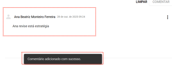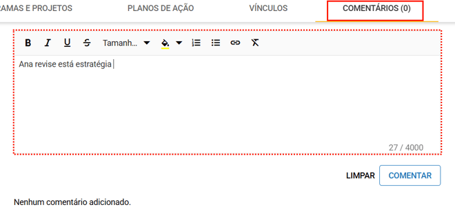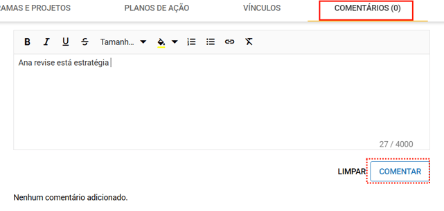 Dentro da sua estratégia é possível realizar comentários diretamente na área de comentários.