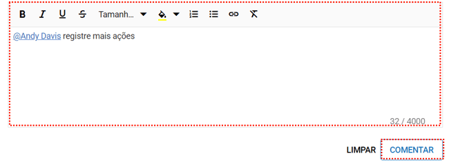 - Para mencionar alguém, digite @ seguido do nome do colaborador.