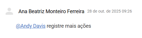 💡 Use as menções para direcionar tarefas, solicitar validações ou reforçar pontos importantes. Isso torna a comunicação mais ágil e centralizada dentro do sistema.