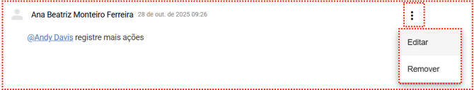 - Editar um comentário já registrado, caso precise corrigir ou complementar a informação.