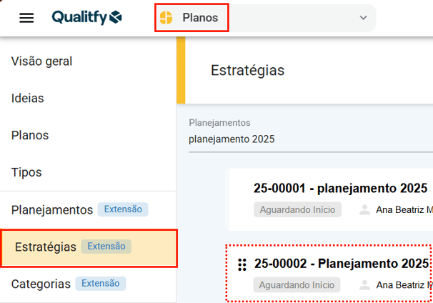 Para comentar em uma estratégia, acesse a aba “Estratégias” e selecione a estratégia no qual deseja adicionar seu comentário.