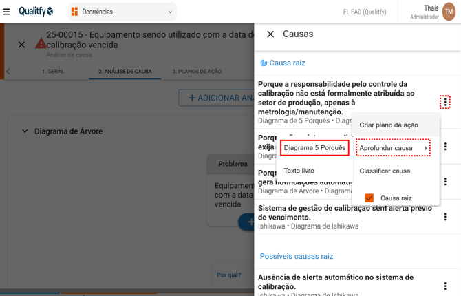 Como aprofundar a análise de causa de uma ocorrência utilizando o 5 porquês no Qualitfy?
