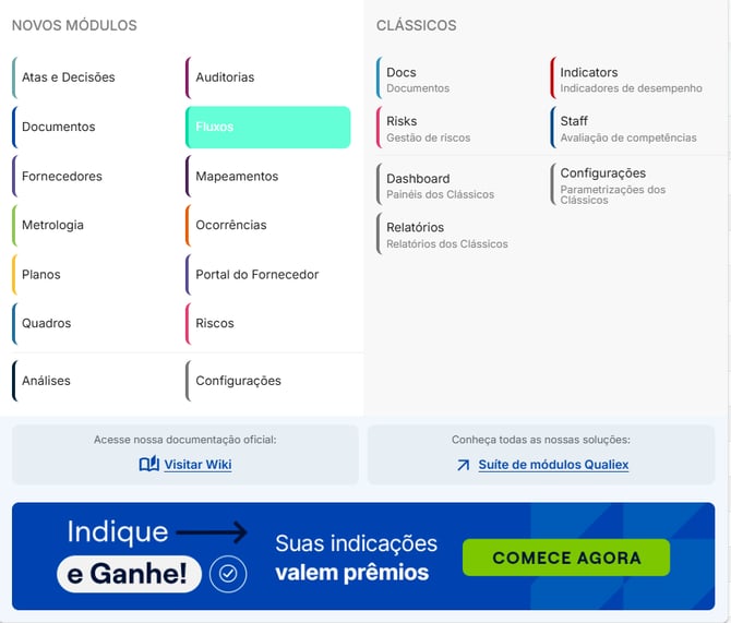 - Acesse o módulo Fluxos