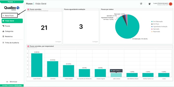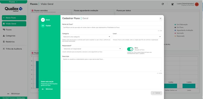 O cadastro de um novo fluxo é o primeiro passo para documentar e padronizar um processo dentro do módulo Fluxos.