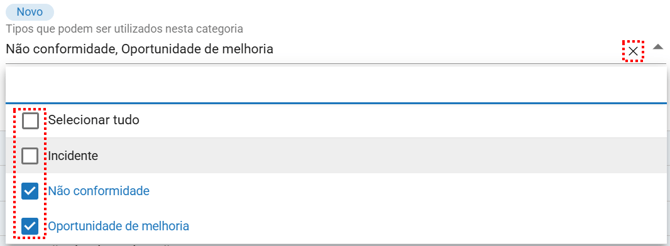 Todos os tipos estarão automaticamente marcados, sendo possível desmarcar aqueles que não são adequados para a categoria.