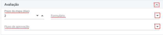 - Formulário (é opcional): é um conjunto de campos personalizados, pré-cadastrados, que poderão ser utilizados para preenchimento da etapa de "Avaliação" (é opcional).