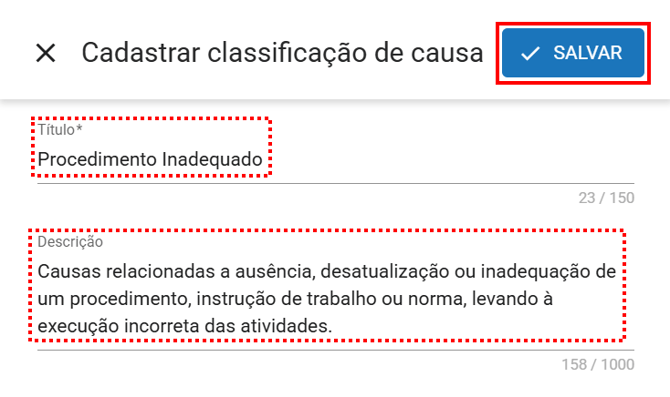 2. Cadastrando uma classificação de causa