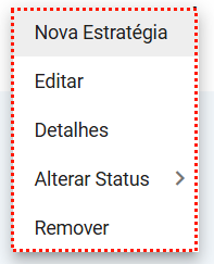 Nova estratégia: Ao selecionar esta opção, você será direcionado para uma tela onde poderá cadastrar uma nova estratégia, vinculando-a à estratégia principal criada anteriormente.