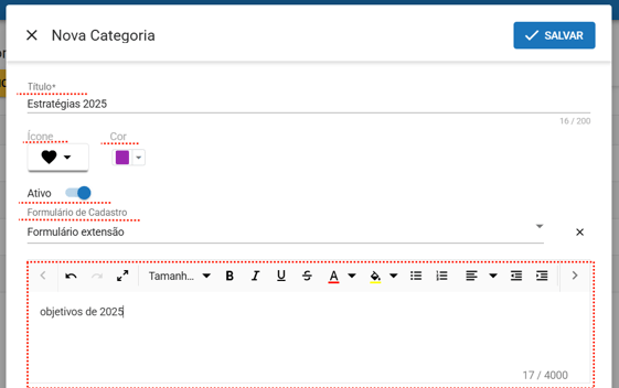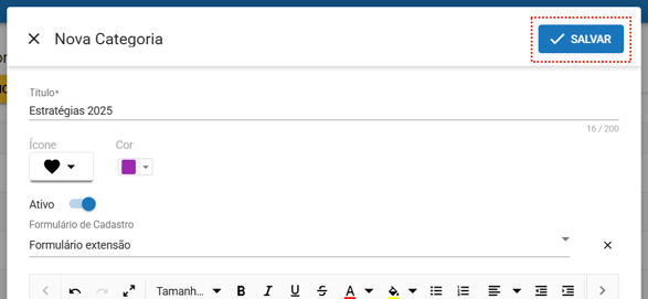 Título (obrigatório): Nome da categoria a ser cadastrado