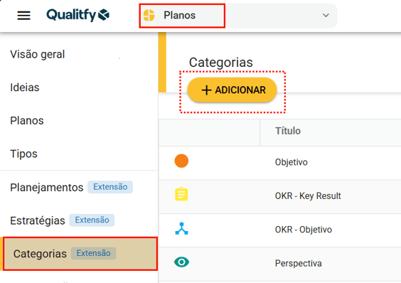 As categorias são como etiquetas que ajudam a organizar melhor suas estratégias, agrupando-as por temas ou finalidades específicas. Elas facilitam a visualização, o preenchimento de informações e a gestão das estratégias dentro da plataforma.