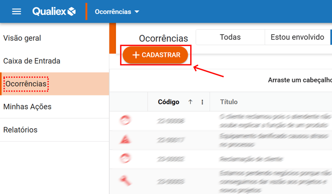 Se a opção de "salvamento automático" estiver habilitado, ao clicar em "cadastrar" será gerado um novo código para a ocorrência e ela passará a existir no sistema.