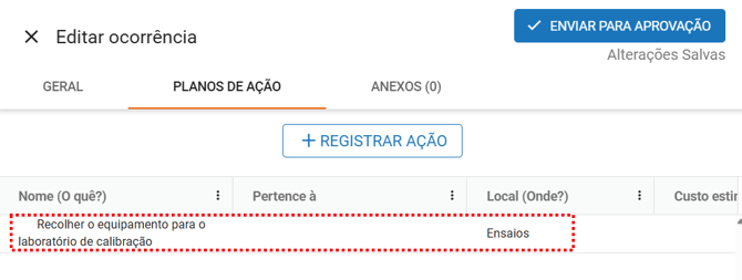 Na aba Plano de Ação conseguimos cadastrar as ações imediatas que foram executadas, ou que estão sendo executadas.
