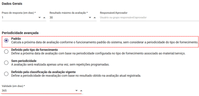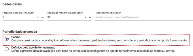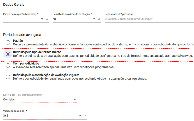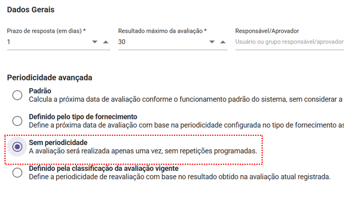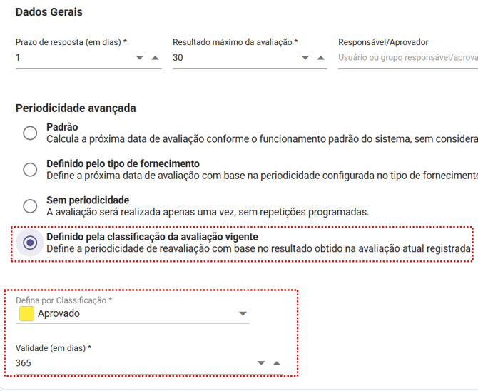 Como configurar a Periodicidade Avançada em Avaliações de Fornecedores?