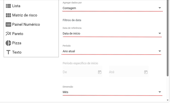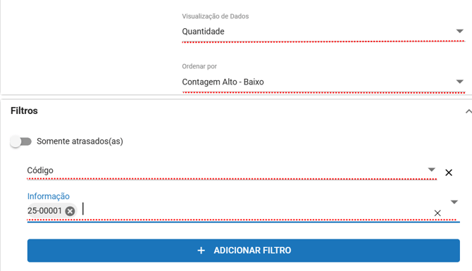 A área de filtros permite personalizar ainda mais o que será exibido no painel.